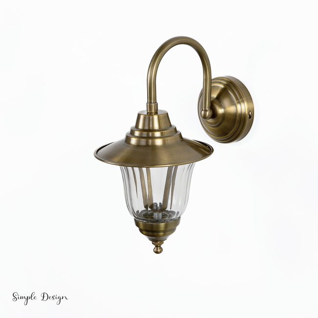 מנורת קיר חוץ שרלוט זכוכית דגם 191B1 מתאים לנורות E27 סטנדרטיות (שימוש בנורות לד בלבד) עשויה מפליז מלא קוטר החופה 16סמ גובה הזרוע 12סמ ומרחק הזרוע מהקיר 16סמ